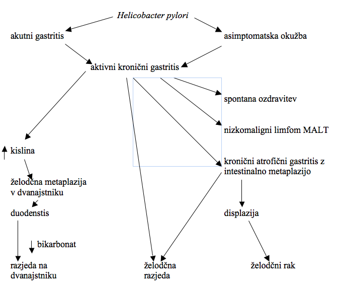 3. Možni izidi okužbe z bakterijo Helicobacter pylori